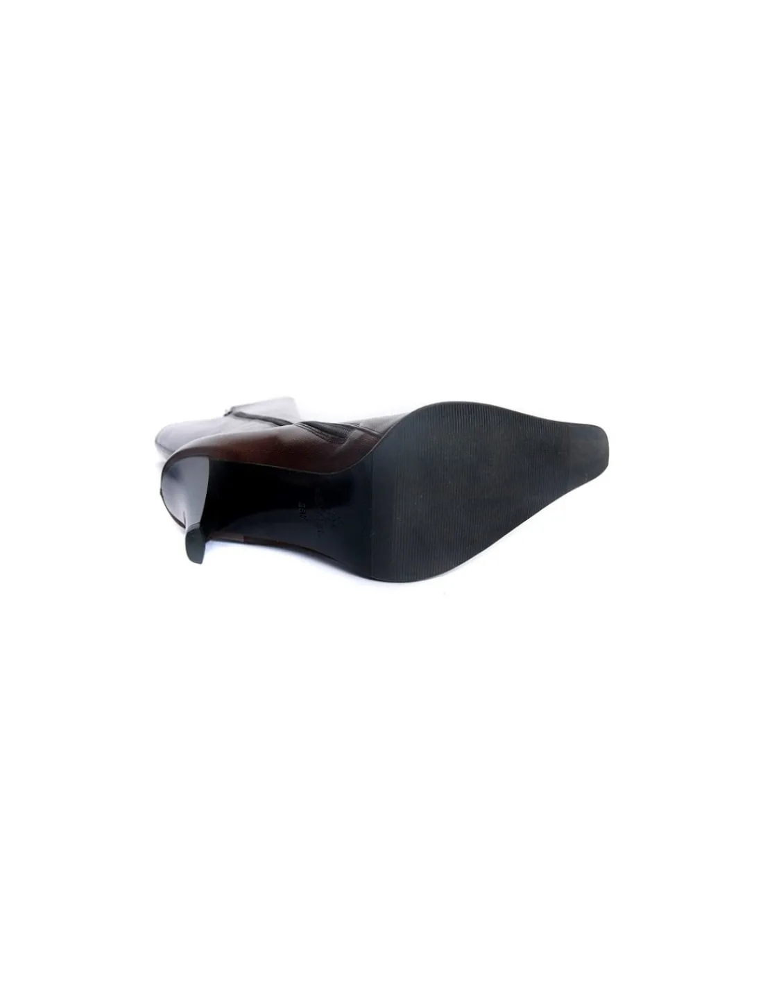 Obcasy o absolutnie zaskakującej formie, stabilne i naprawdę komfortowe jak na wysokość prawie 10 cm. Patrząc na nie z boku wąskie, z tyłu szerokie, zwężające się. Wykonane z tworzywa, w kolorze czarnym. Zgodnie ze starą zasadą projektowania kształt nosków pozostawia taki sam ślad jak kształt wierzchnika, czyli fleczka i właśnie tu również ta zasada ma swoje zastosowanie.