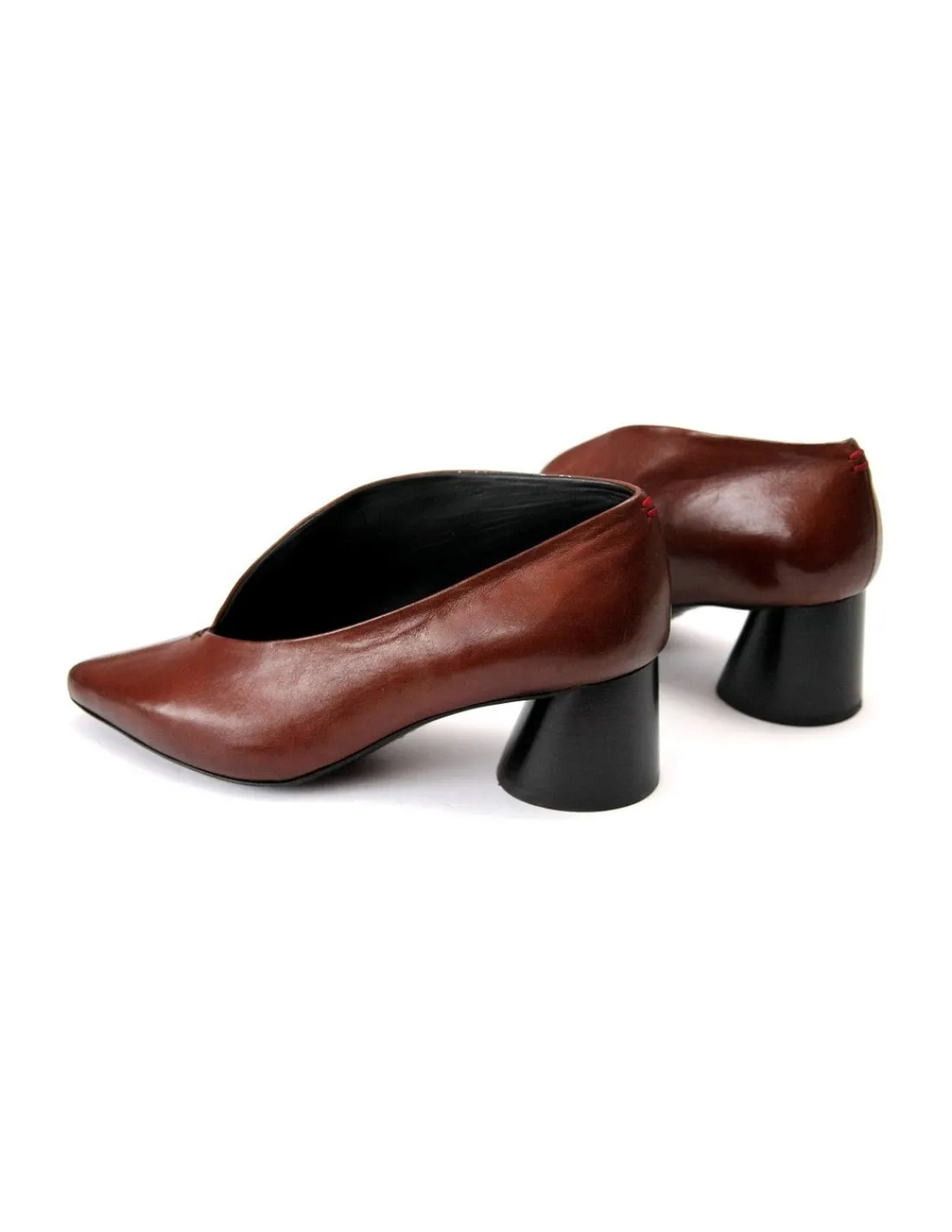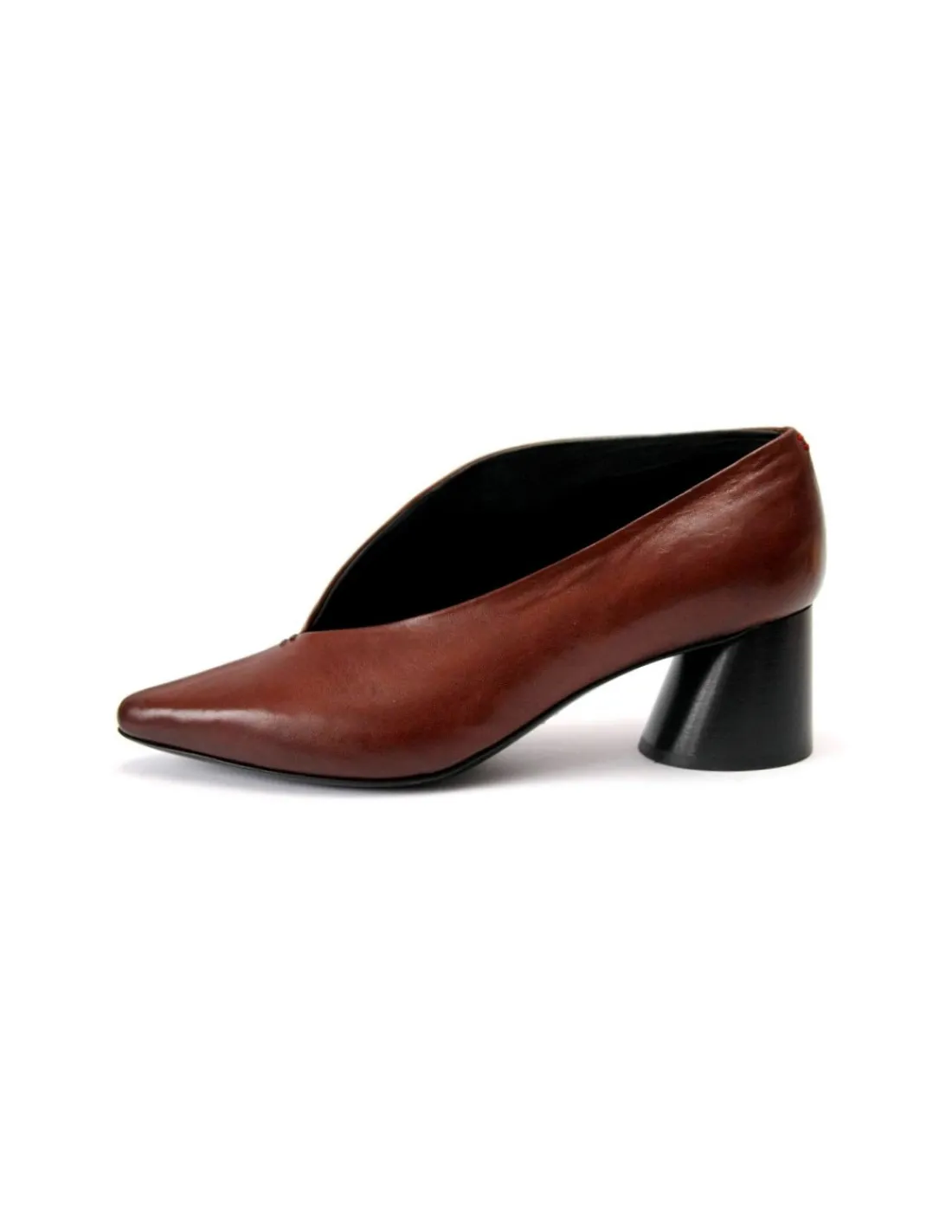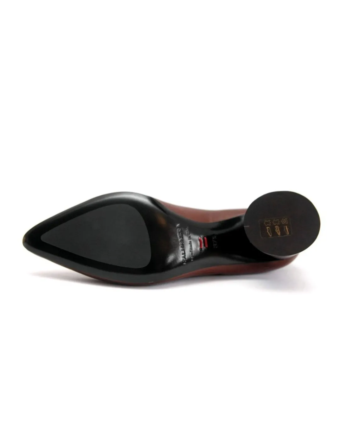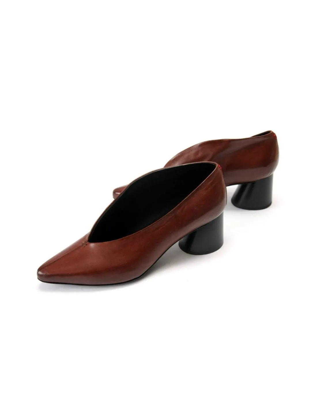 Forma wysmuklona o kroju zakończonym noskiem w szpic. Skóra licowa jest bardzo miękka, tutaj w kolorze mlecznej czekolady – nie przesadzamy, nasze Klientki w sklepie stacjonarnym są zachwycone miękkością tego modelu. Wycięcia cholewek w tych czółenkach gwarantują stabilizację stóp. Są głęboko zabudowane bez zbędnych szyć i łączeń doskonale nadają się niemal dla wszystkich w tym również dla niedoskonałych stóp. Prezentują się bardzo zgrabnie. Równocześnie z przekonaniem zapewniamy Was o ich komforcie, choć wiemy że to subiektywne odczucia, utwierdzeni jednak większościową opinią dotychczasowych Klientów. Wnętrze w całości wykonane jest ze skóry. Skórzane są futrówki i skórzane również logowane wyściółki, a dodatkowo pod nimi miękka silikonowa wkładka i to ona daje odczucie komfortu pomimo zastosowania skórzanych zelówek.