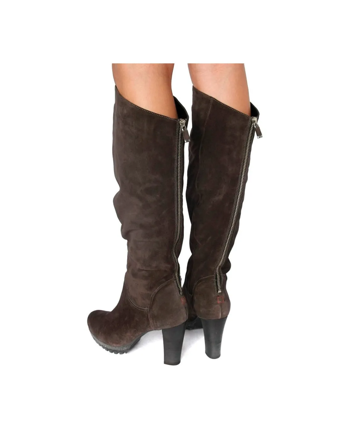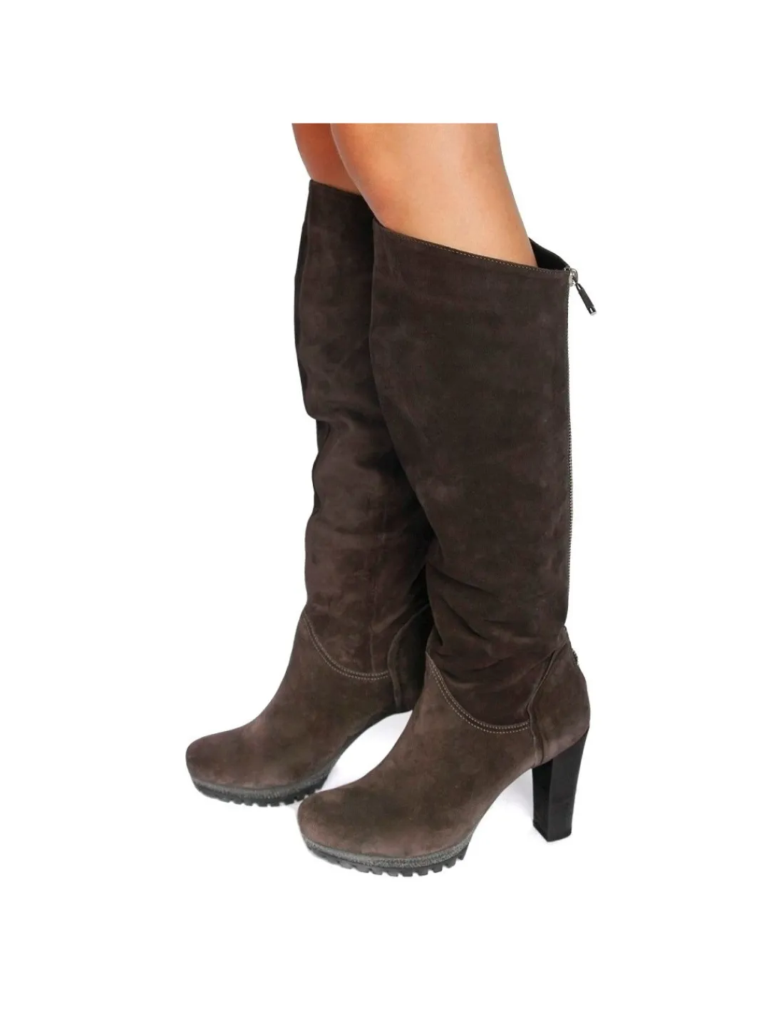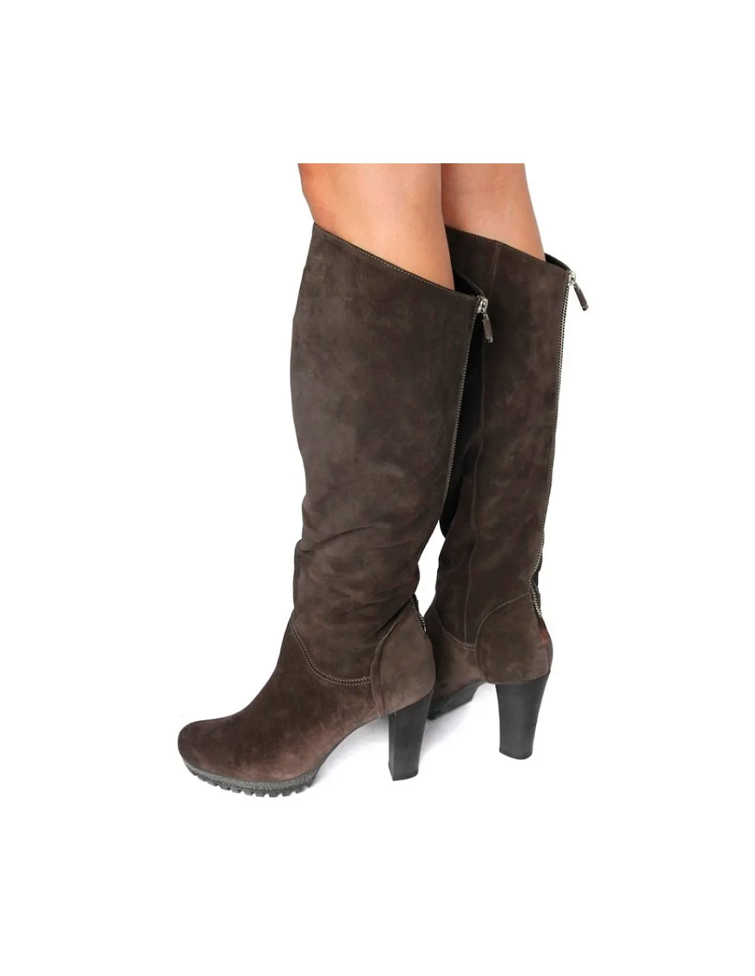 Niewiarygodnie komfortowe, miękkie, elastyczne, łatwo poddające się podczas chodu kozaki. Zostały wykonane z bardzo miękkiej, mięsistej skóry zamszowej w szlachetnym szarym kolorze określanym przez Klientki również jako grafitowy, asfaltowy. Skóra na cholewkach nie opina łydek, jest delikatnie drapowana i w zamierzeniu projektanta powinna się lekko marszczyć – uzyskano ten efekt dzięki zastosowaniu specjalnego kroju cholewek.