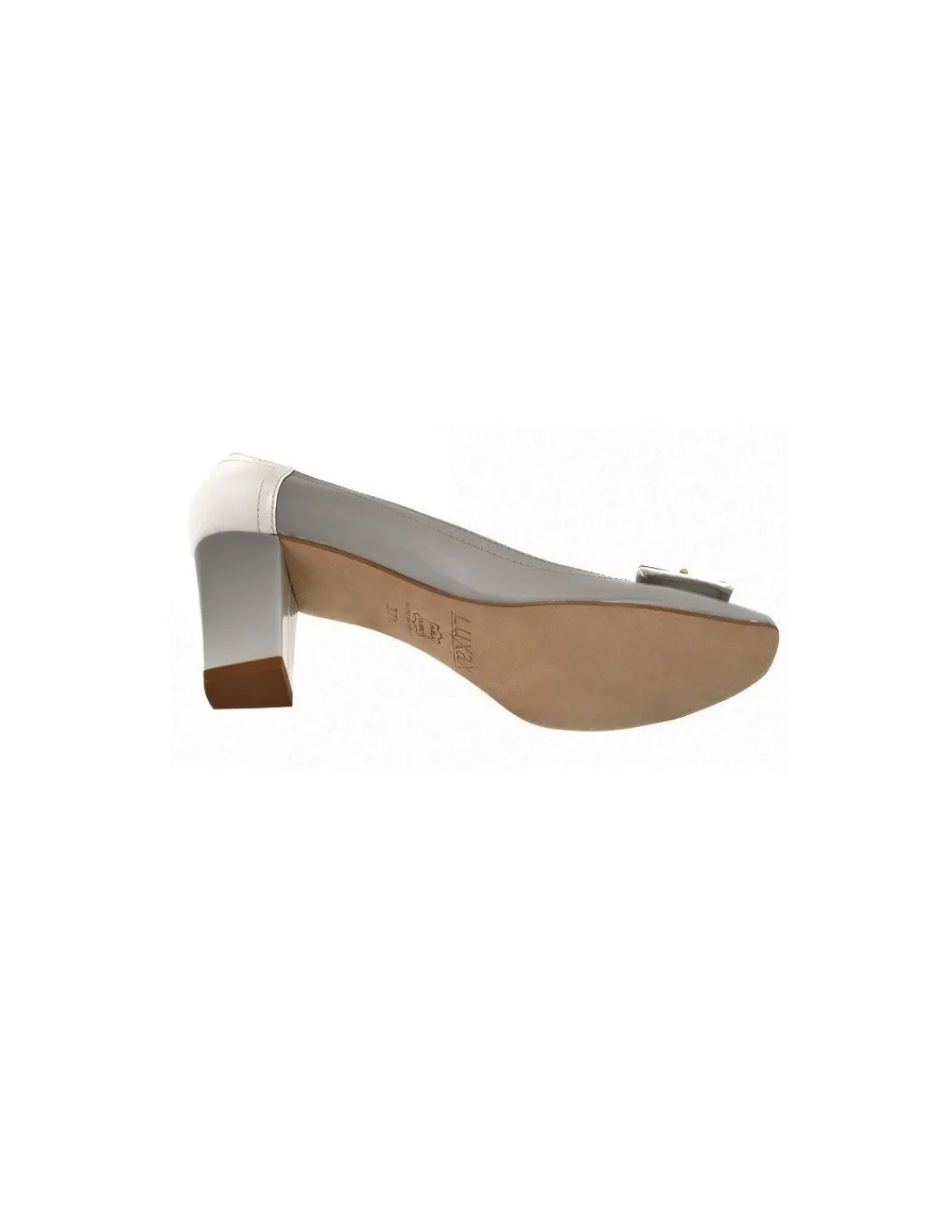 Wykonane z najwyższej jakości, skóry lakierowanej w kolorze jasno – szarym. Na pięcie oraz na nosku wstawki z białej skóry, również lakierowanej. Prezentują się delikatnie i w tym zestawie kolorystycznym mieszczą się w dress code. Pobiegniesz w nich do pracy w instytucjach i firmach, które do tego obligują, a jeśli lubisz ten styl to z przyjemnością pozostaniesz w nich również po pracy.