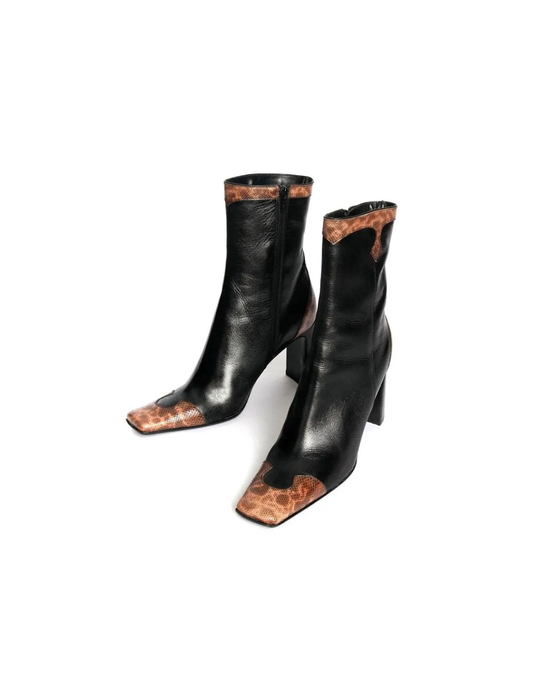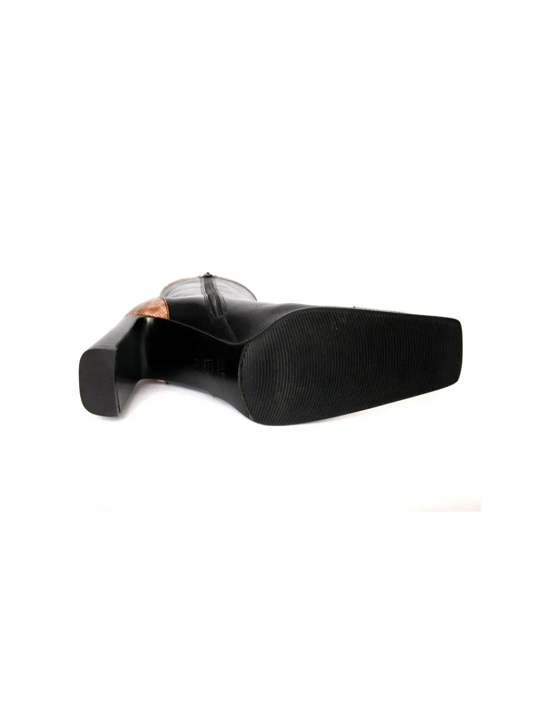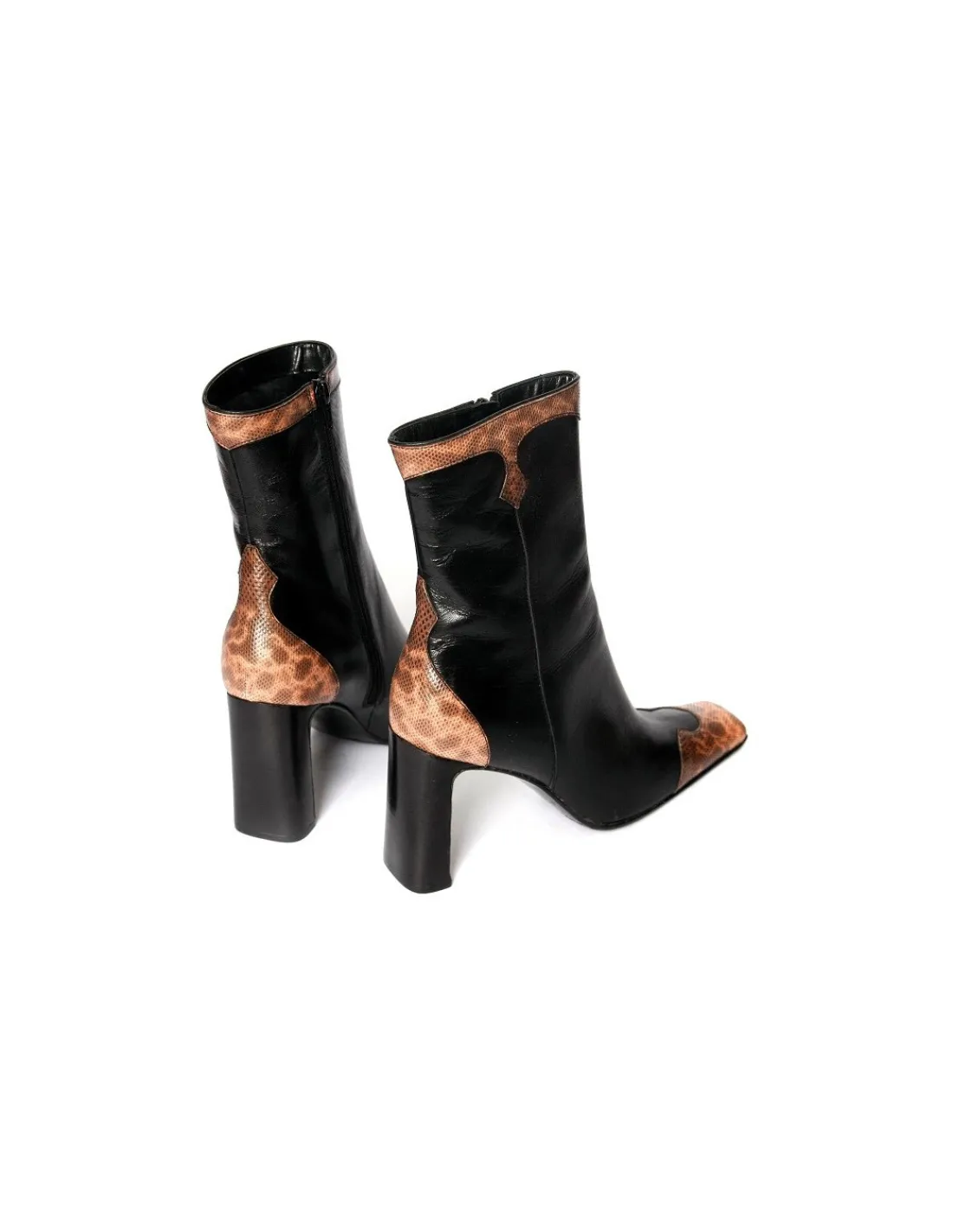 Cholewka zapinana na zamek po stronie przyśrodkowej. Obcasy dość wysokie, komfortowe, dzięki swojej szerokości stają się niezwykle stabilne, w całości w skórzanych obłogach.
