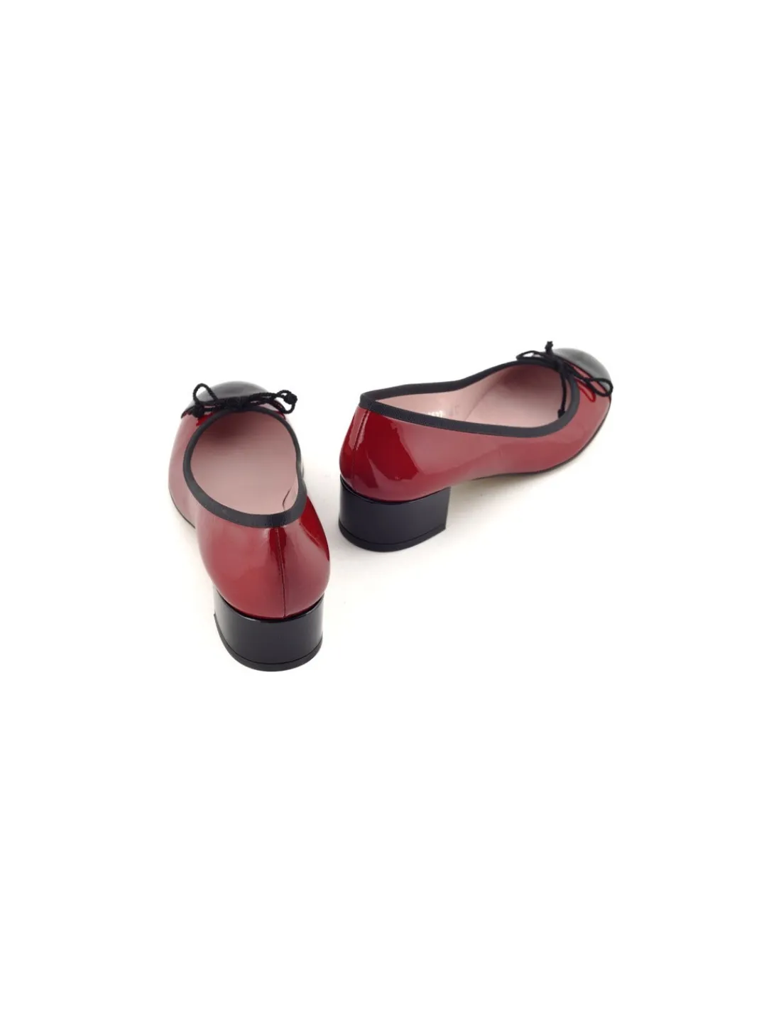 Wykonane z najwyższej jakości, miękkiej skóry lakierowanej w dwóch kolorach – czerwonym i czarnym. Zastosowanie kontrastujących kolorów i odcięty nosek jest charakterystyczny dla czółenek od Coco Chanel. Wycięcie wokół cholewki obszyte zostało czarną taśmą. Czarny wątek podtrzymują niewysokie obcasy obłożone również, czarną lakierowaną skórą.