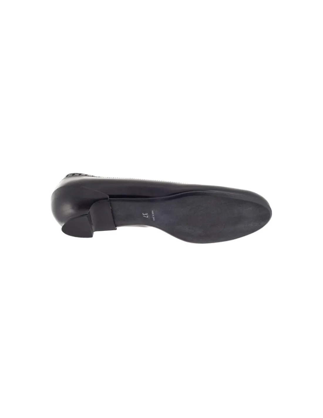 Zgrabna linia baleriny posiada minimalny obcasik, o dość zaskakującej formie – obejmuje on część pięty dyskretnie przyciągając uwagę. Obcasik w czarnych, skórzanych obłogach. Zelówki wykonane z czarnego, elastycznego tworzywa. Są antypoślizgowe, nie chłoną wilgoci.