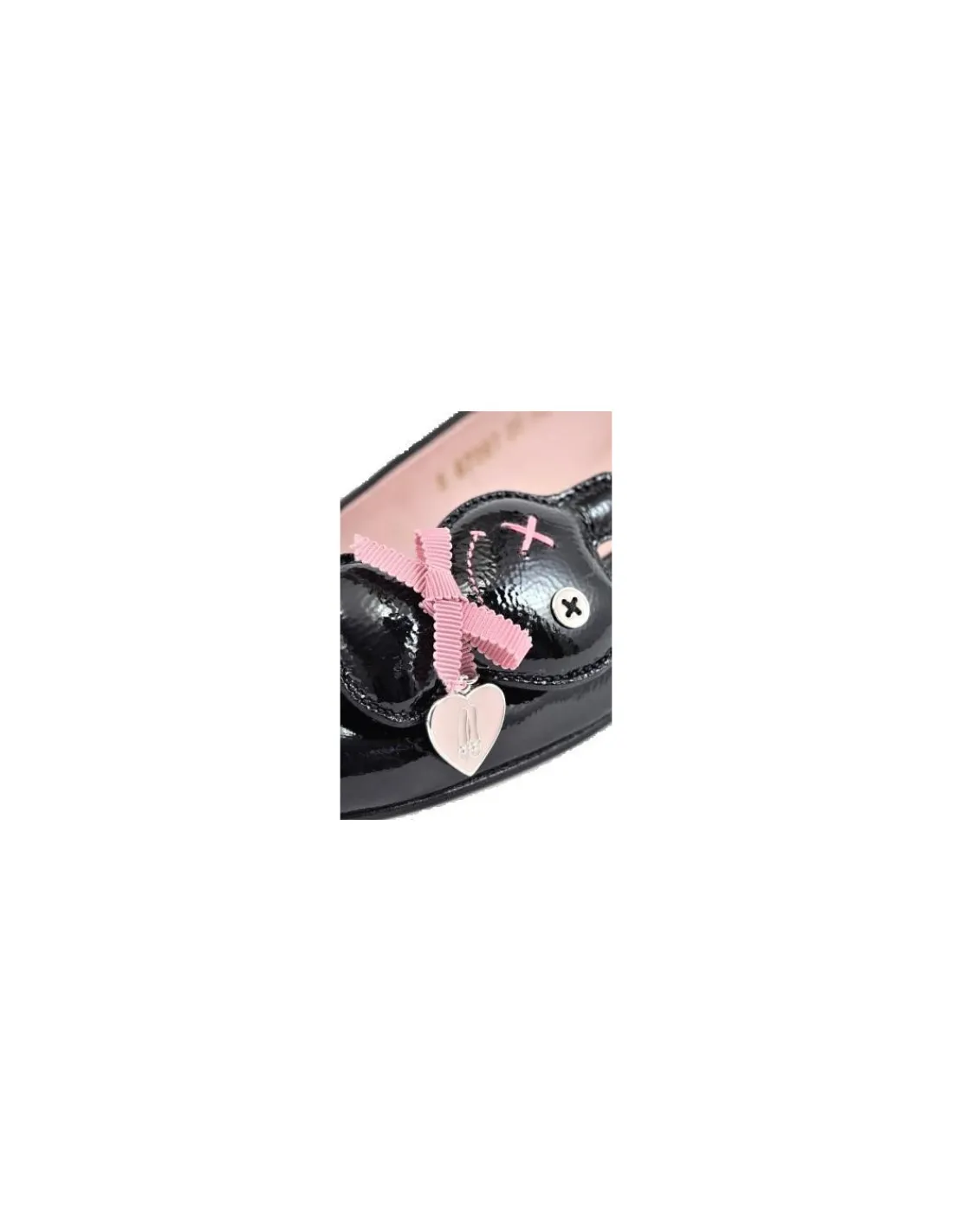 Unikatowy model z serii Limited edition wprowadzony na rynek na specjalne zamówienie. Przy balerinkach zamontowane trójwymiarowe, ręcznie wykonane pacynki ze skóry lakierowanej w kolorze czarnym. Jedna z nich posiada przywieszkę w postaci – LOGO marki Pretty Ballerinas, oraz niewielka różową kokardkę.