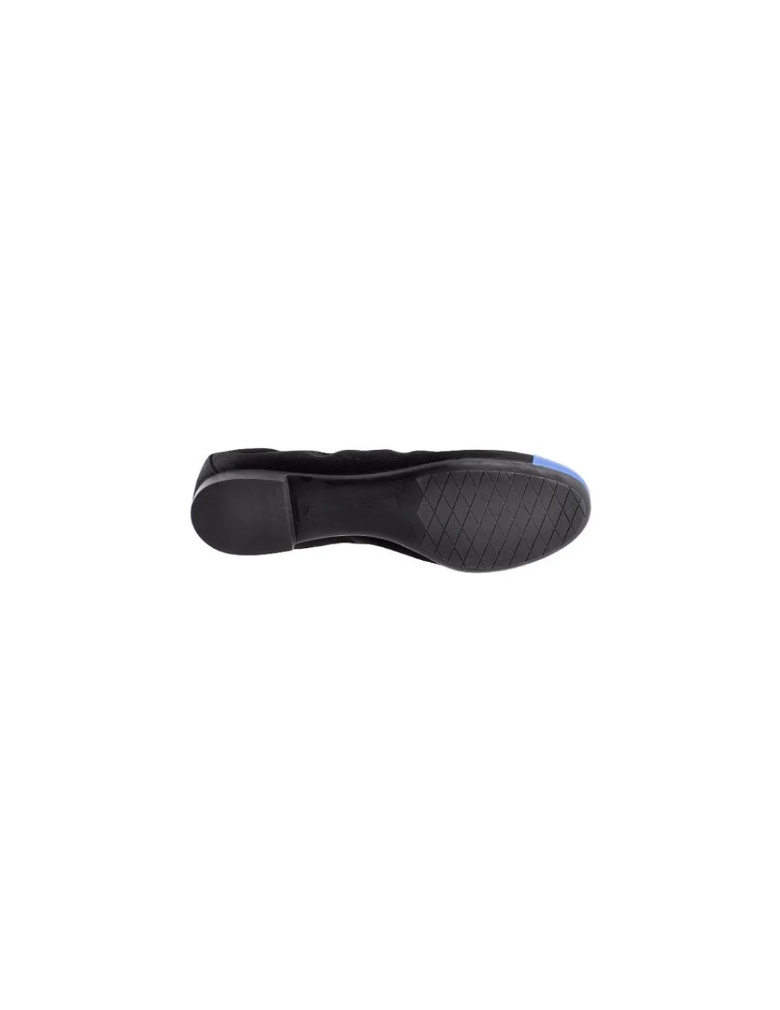 Cholewka wykończona czarną, płaską gumową wstążką, dzięki której po założeniu na stopę baleriny nie „otwierają się”. Ważnym jest fakt iż zapiętek nie posiada gumowej wstawki i nie powoduje ucisku, czy wżynania się w piętę. Wewnątrz wkładki i futrówki skórzane, w kolorze pudrowego różu, ze złotym logo marki.