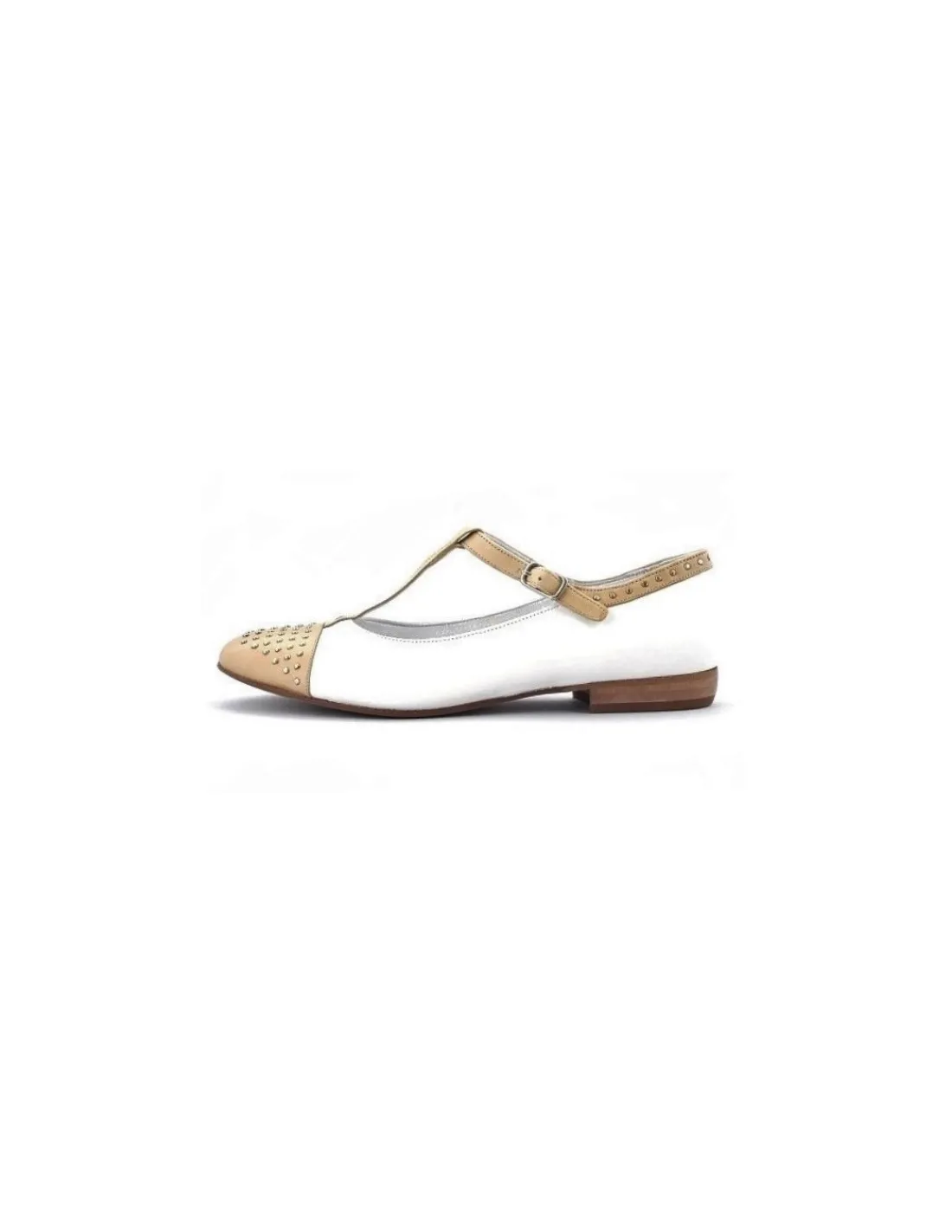 Zostały wykonane z doskonałej jakości, miękkiej, cielęcej skóry licowej. Skóra łatwo pracuje i dopasowuje się do stóp. Kolor mleczna biel (ecru), paseczki i nosek w kolorze, który znika na nogach bowiem zlewa się z kolorystyką naszej skóry. Forma balerinek nieco wysmuklona, noski okrągłe , ozdobione metalowymi, malutkimi, srebrnymi ćwiekami – podobnie zapiętki. To bardzo delikatna ozdoba, podkreśla charakter tego modelu, i nie jest nachalna. Wewnątrz wkładki i futrówki również ze skóry cielęcej w srebrnym kolorze .