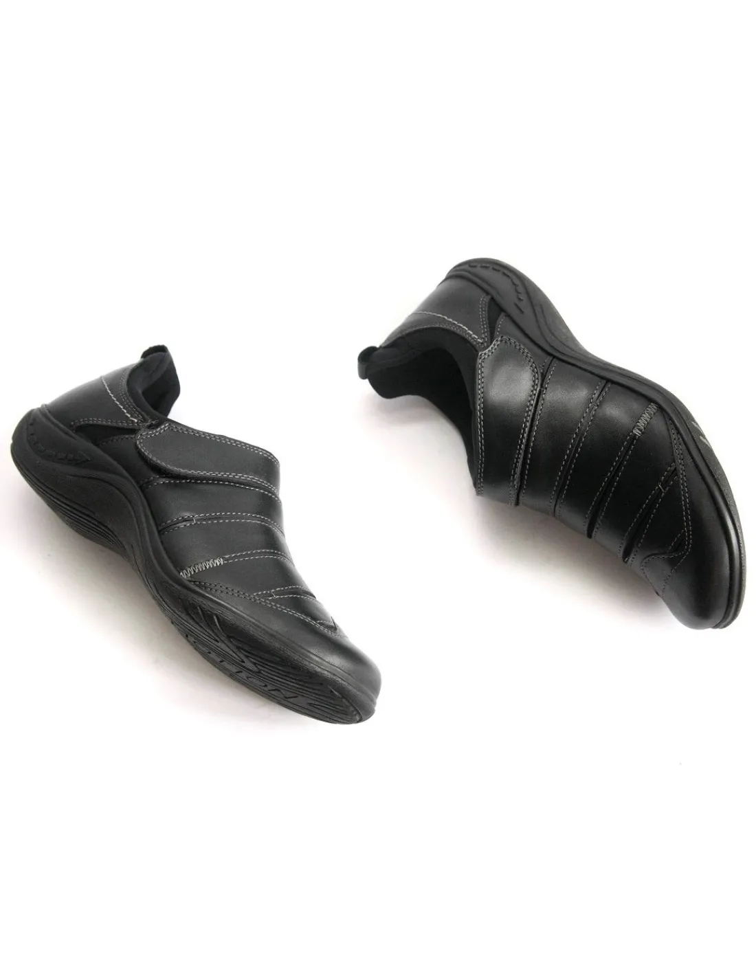 Te niewiarygodnie komfortowe półbuty zostały wykonane z najwyższej jakości, czarnej skóry licowej. Pod wierzchnią warstwą skóry znajduje się dodatkowa rozciągliwa tkanina neopren.