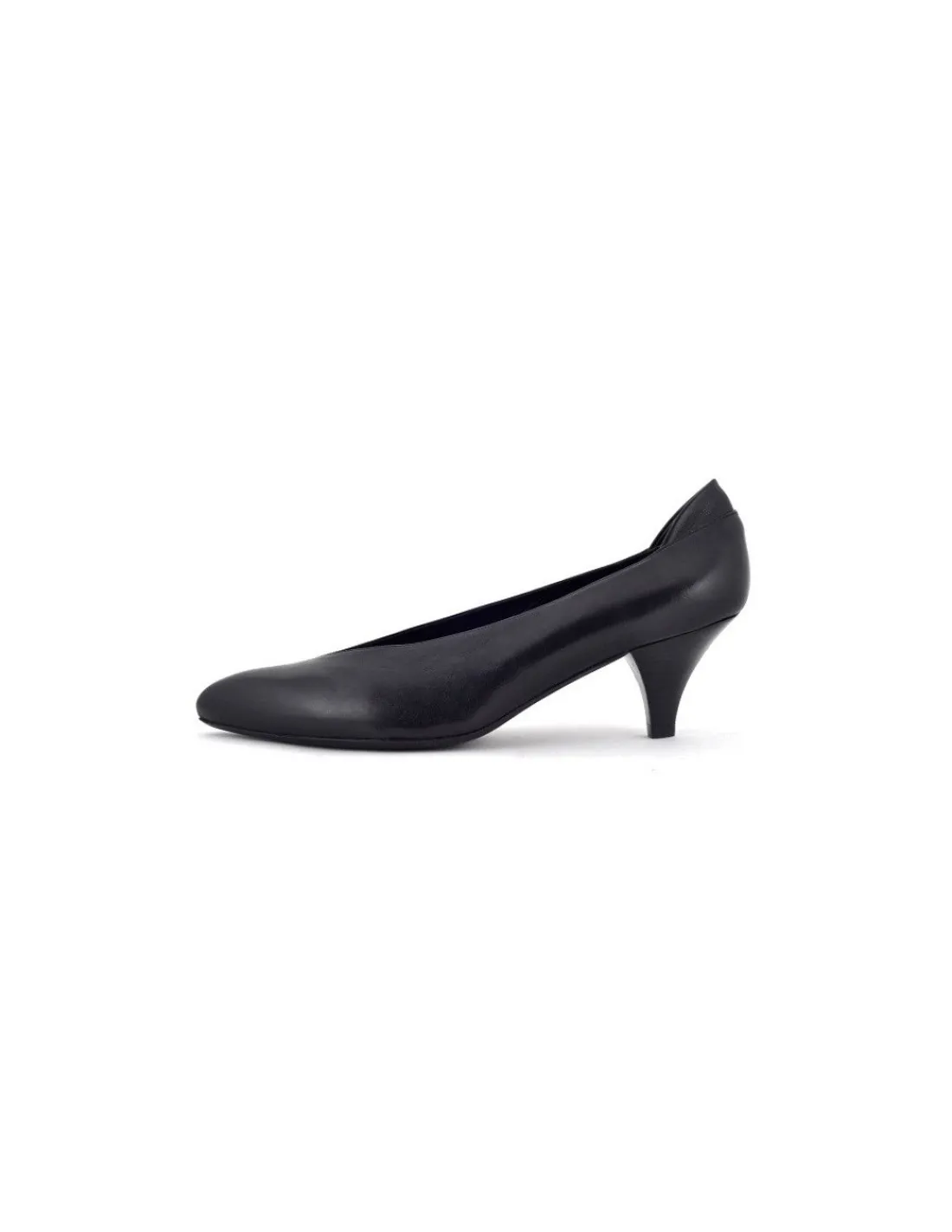 Obcasy komfortowe, lekko cofnięte w stosunku do linii pięty, dzięki czemu środek ciężkości jest świetnie wyważony, w czarnych, skórzanych obłogach. Przemyślanym rozwiązaniem są zapiętki wykonane z bardzo miękkiej skóry, kończące się nieco wyżej niż standardowo – a wszystko po to by sprostać nawet najbardziej wrażliwym i wymagającym stopom. Skórzane zelówki to absolutnie wyższa półka. Stopy mają lepszą wentylację, „oddychają” w biurowej przestrzeni lub w lecie jest to wyjątkowo doceniany atut.