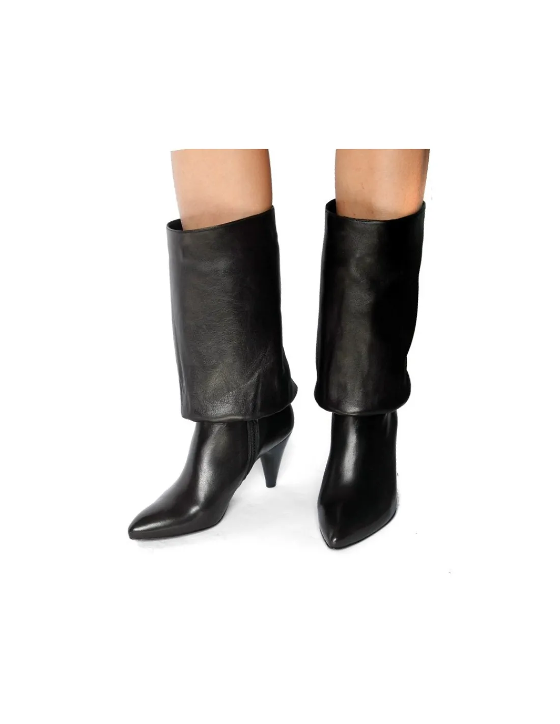 Cholewka szeroka, z możliwością opuszczenia – dzięki takiemu rozwiązaniu z kozaków bez wysiłku i w „okamgnieniu” powstaną botki. Skórzana cholewka dzięki drapowaniom świetne wygląda zarówno na szczupłych jak i na tęższych łydkach. Skóra „nad kostką” stanowiąca swoisty kołnierz niczym ściągacz, została przymarszczona. Wszyto tam i zamaskowano gumową wstawkę. To właśnie ona zbiera i marszczy cholewkę, niczym mankiet przytrzymuje ją również w wybranym miejscu podczas opuszczania.