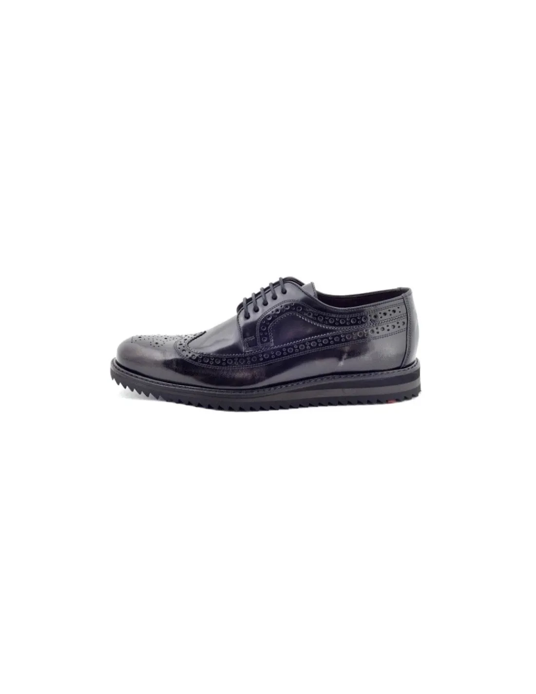 Na noskach przeszycia oraz perforację w kształcie rozety, a na cholewkach przeszycia i dziurkowania sięgają do pięty – to tzw. full brogues. Forma ergonomiczna dość szeroka a noski okrągłe podniesione. Wyściółki oraz futrówki wykonane z naturalnej skóry.