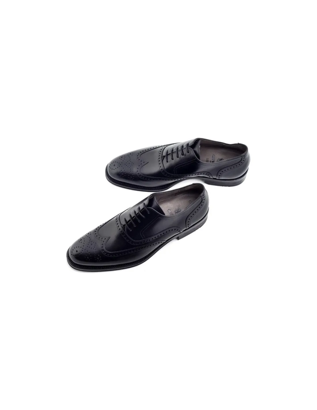 Wykonane z selekcjonowanych skór – miękkiej, czarnej skóry bydlęcej która świetnie dopasowuje się do kształtu stóp nie zmieniając formy butów. Na noskach znajdują się przeszycia, oraz perforacja w kształcie rozety z użyciem dwóch wielkości otworów, a na cholewce przeszycia i dziurkowania sięgają w formie skrzydełek do pięty. Forma półbutów ergonomiczna okrągła, dość szeroka – z łatwością mieści palce stóp. Buty wykonane na takim kopycie mają więcej miejsca na palce. Wewnątrz zarówno futrówki jak i logowane wyściółki wykonane są również ze skóry.
