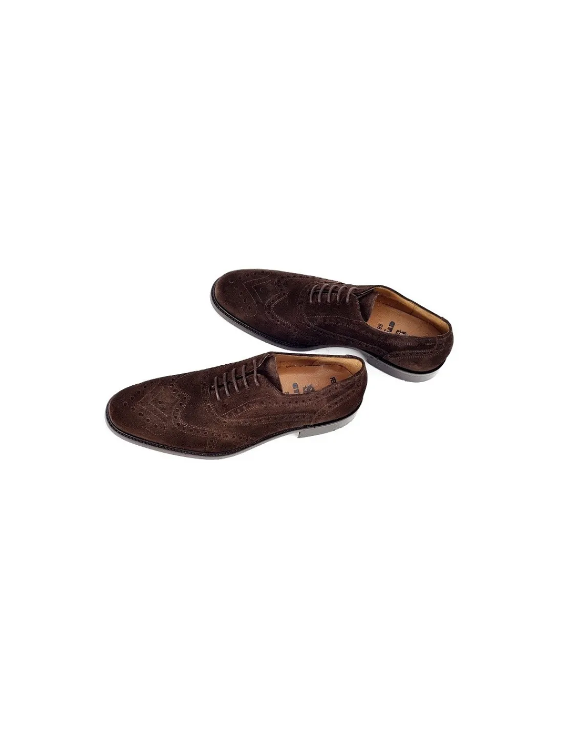 Wykonane z najwyższej jakości, miękkiej, ciemno brązowej skóry zamszowej, która świetnie dopasowuje się do kształtu stopy. Na noskach charakterystyczne zdobienia, ażurowanie i przeszycia, oraz perforacja w kształcie niewielkiej rozety, a na cholewce przeszycia i dziurkowania sięgające w formie skrzydełek do pięty. Buty sznurowane na 5 dziurek okrągłym woskowanym sznurowadłem. Forma nosków okrągła, dość szeroka i komfortowa. Buty oxford wykonane na tym kopycie mają więcej miejsca na palce niż inne modele. Wyściółki podobnie jak też futrówki wykonane zostały ze skóry w naturalnym jej kolorze. Obcasy wyodrębnione, w brązowych, skórzanych obłogach.