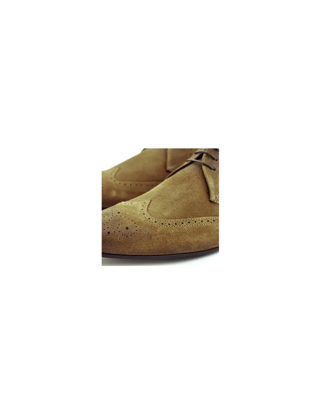 Najbardziej klasyczne i lubiane męskie buty typu DERBY brogue ( golf angielski) z charakterystycznymi ażurkami i zdobieniami. W tym modelu na noskach niewielka rozeta oraz ażurowanie w okolicy przyszwy, które przenosi się do pięt. Forma wysmuklona, wydłużona, a noski zwężone z zaokrąglonym wykończeniem. Ten model chętnie jest wybierany przez Klientów z wysokim podbiciem, bowiem rozszerzające się sznurowadła na 3 dziurki ułatwiają dopasowanie butów na podbiciu według własnych preferencji i upodobań.