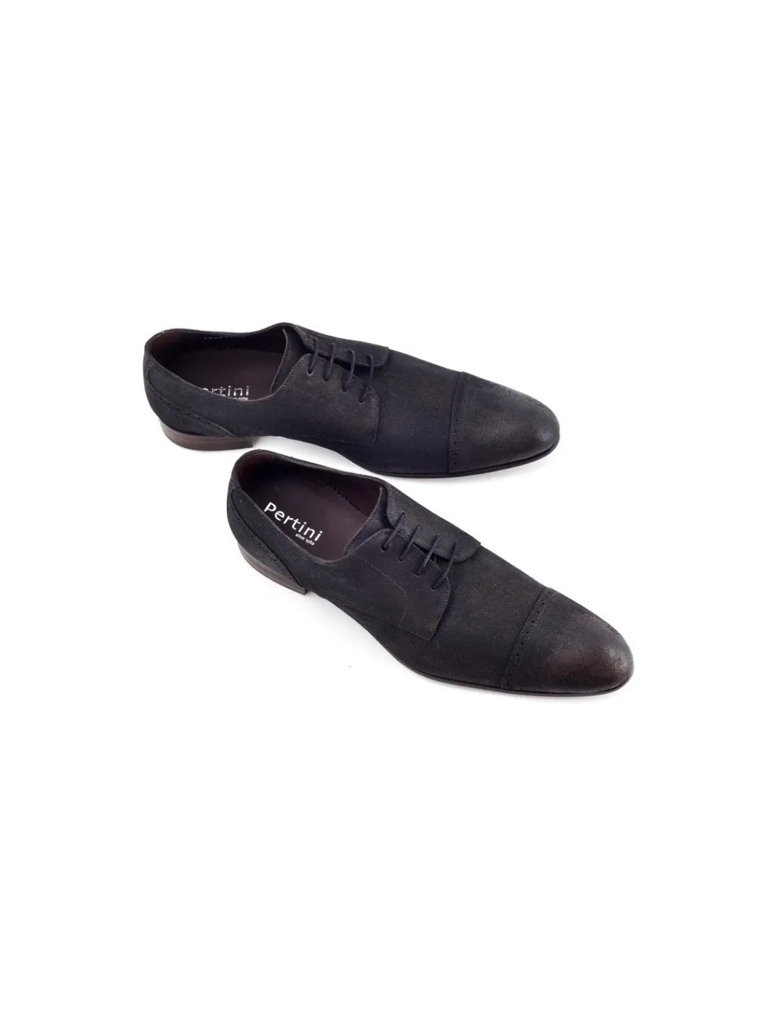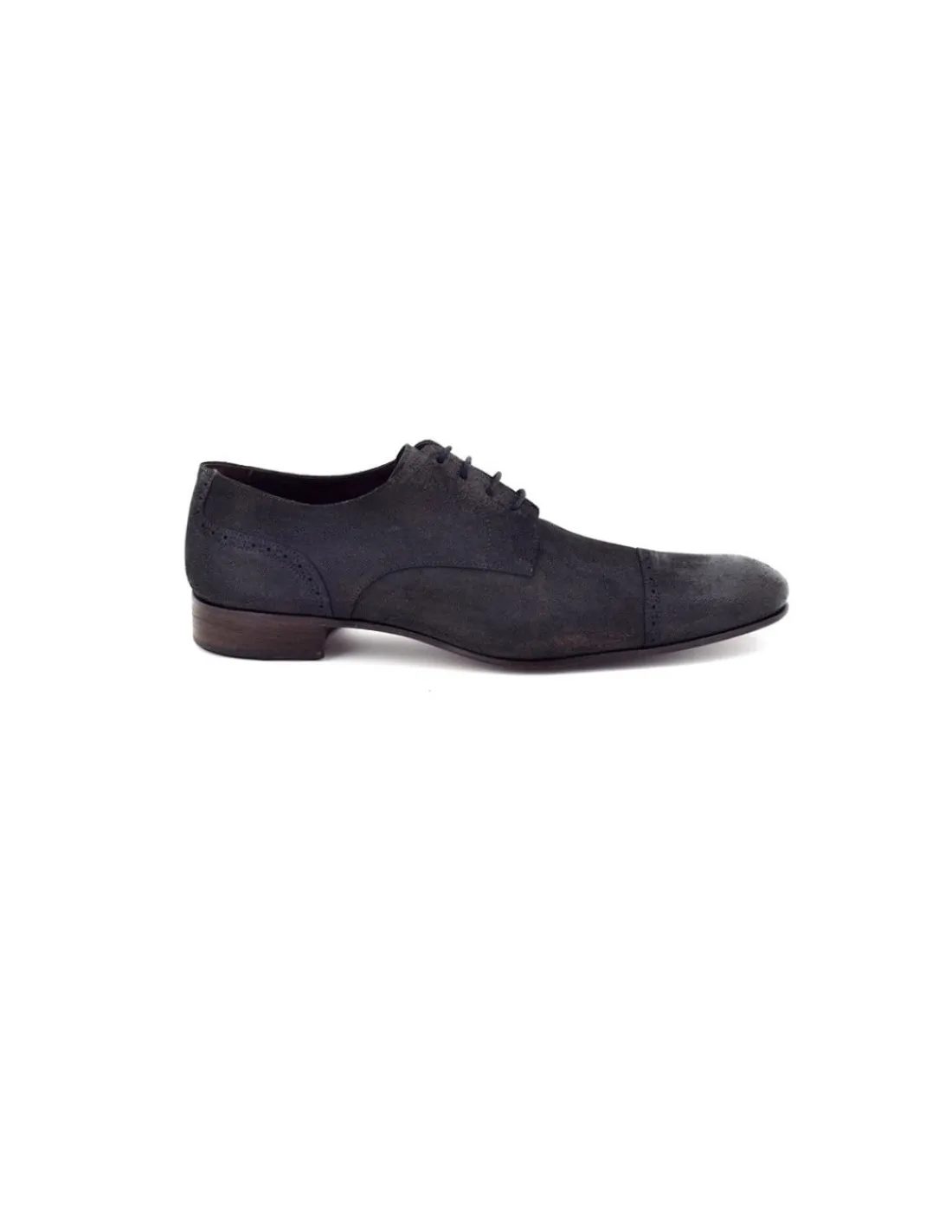 Najbardziej klasyczne i lubiane męskie buty typu DERBY cap toe, z charakterystycznym przeszyciem w poprzek wierzchów, tuż za palcami. W tym modelu zastosowano tez minimalistyczne ażurowanie przy szyciu cap toe oraz w okolicy pięt. Ten model chętnie jest wybierany przez Klientów z wysokim podbiciem, bowiem rozszerzające się sznurowadła na 5 dziurek ułatwiają dopasowanie butów na podbiciu według własnych preferencji i upodobań. Forma butów ergonomiczna, lekko wydłużona z okrągłym, podniesionym noskiem.